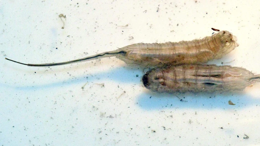 Una de sus particularidades es que cuando el gusano cola de rata alcanza el último estadio de desarrollo agua y busca un lugar seco donde "pupar".