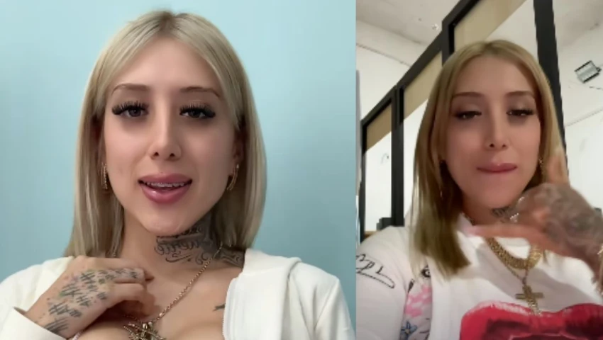 Cuando la tiktoker fue arrestada portaba un conjunto de pantalón y saco color blanco con imágenes de colores y una blusa, además llevaba un crucifijo grande que colgaba de una cadena de oro, y además tenía unos aretes tipo Rolex.