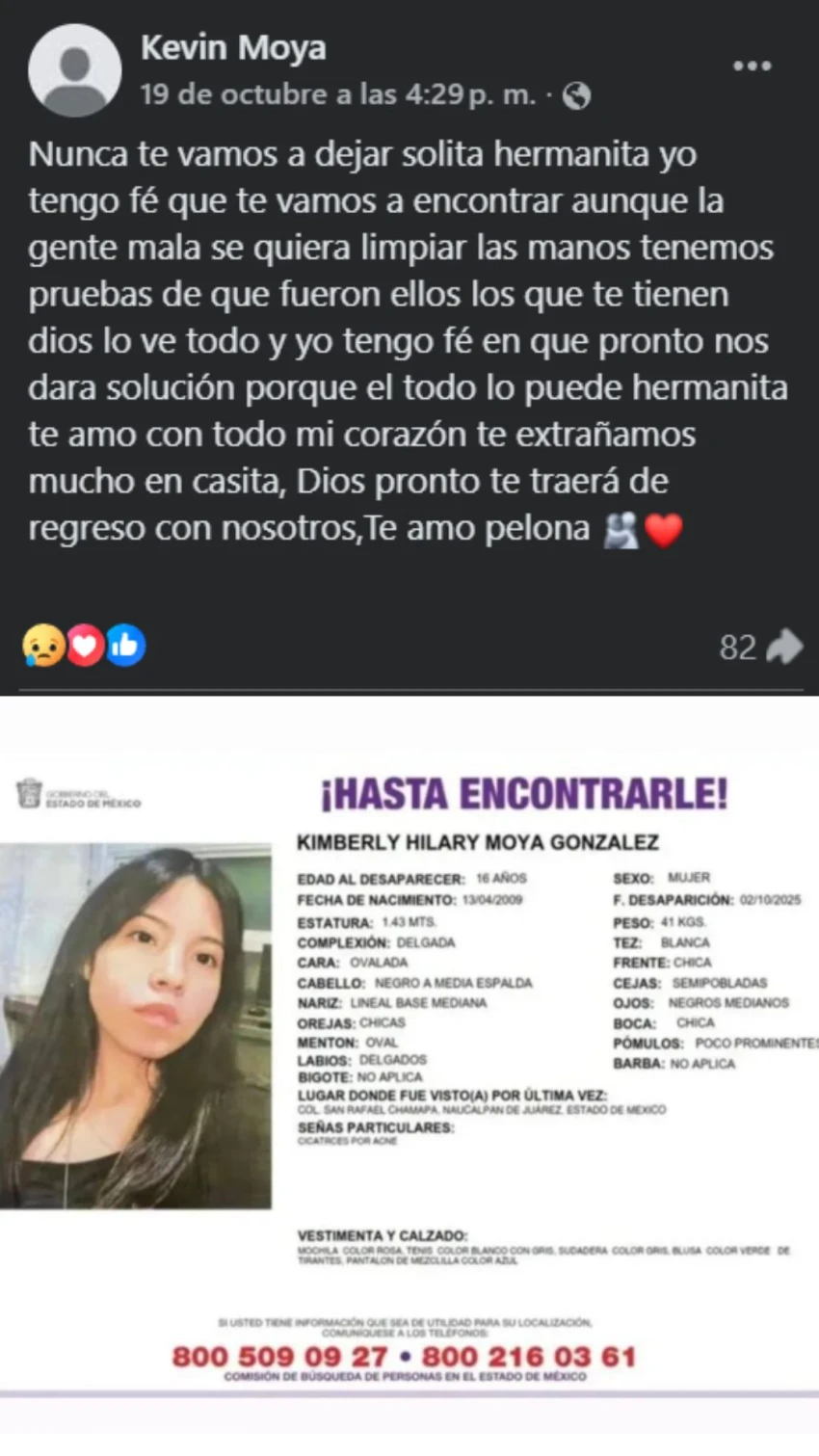 Día 13 de la desaparición de #KimberlyMoya en #Naucalpan #Edomex.