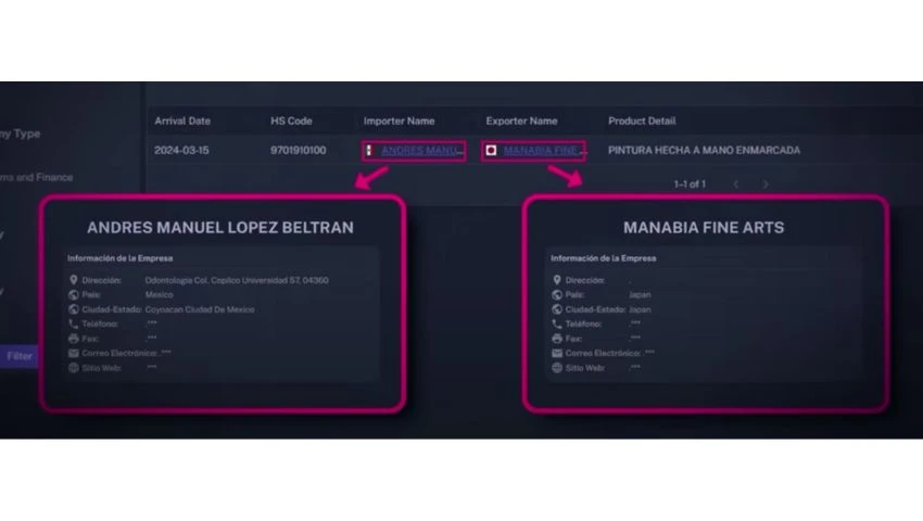 La adquisición, revelada por Latinus y corroborada por Político MX, ocurrió meses antes de que su padre dejara el cargo como mandatario federal. Según los registros de la plataforma Trade Atlas, la pintura fue comprada a la galería Manabia Fine Arts, con sedes en Tokio, Hong Kong, Jersey City y Singapur.