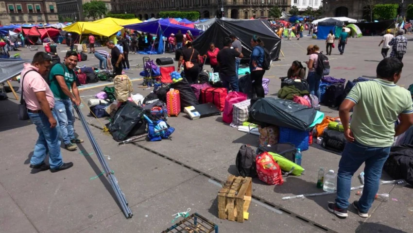 La Coordinadora Nacional de Trabajadores de la Educación (CNTE) comenzó la retirada de su campamento desde la noche del viernes 6 de junio, luego de que en su Asamblea Nacional Representativa del jueves decidieran regresar a sus actividades escolares a partir del lunes.