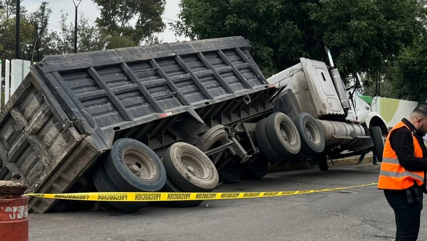 Un tráiler cae en un socavón en la Gustavo A. Madero: hay dos personas lesionadas