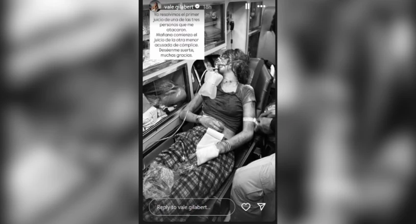 La imagen, difundida en sus historias de Instagram, muestra a Gilabert con una máscara de oxígeno y la ropa teñida de sangre. “Ya resolvimos el primer juicio de una de las tres personas que me atacaron. Mañana comienza el juicio de la otra menor acusada de cómplice, deséenme suerte”, escribió la modelo junto a la publicación.