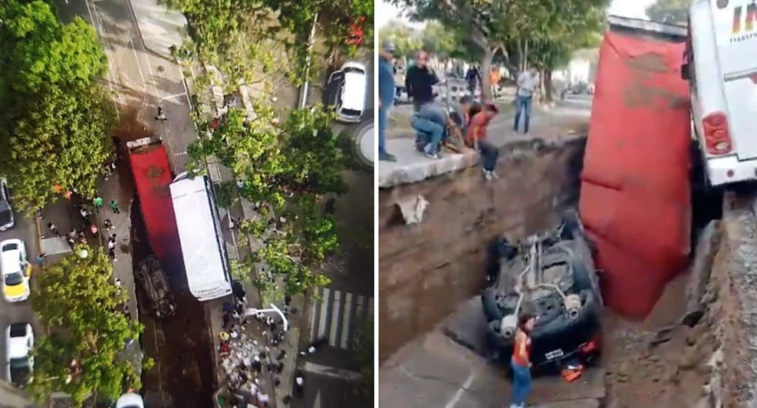 VIDEO | Socavón "se traga" a tres vehículos en Guadalajara: hay menores heridos