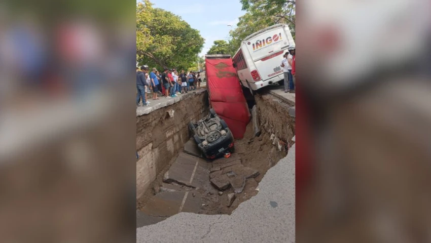 Un socavón de más de tres metros de profundidad se abrió en una vialidad; cae camión y autos