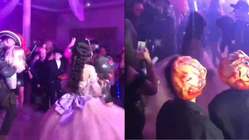 XV años con temática narco en Tamaulipas: hubo chalecos antibalas y máscaras de 'Los Chukys': VIDEO