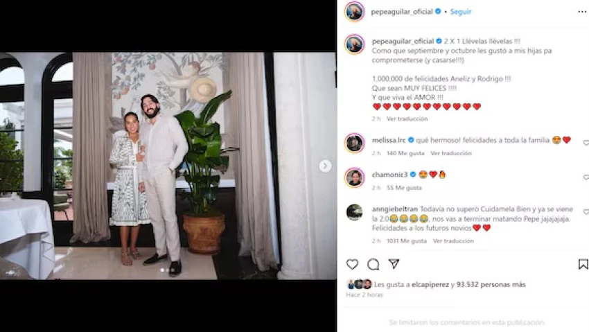 A través de su cuenta de Instagram, Pepe Aguilar, padre de Aneliz, compartió una serie de fotografías del momento en que su hija aceptó la propuesta de su novio Luis Rodrigo Castillo, causando una gran reacción entre los internautas.