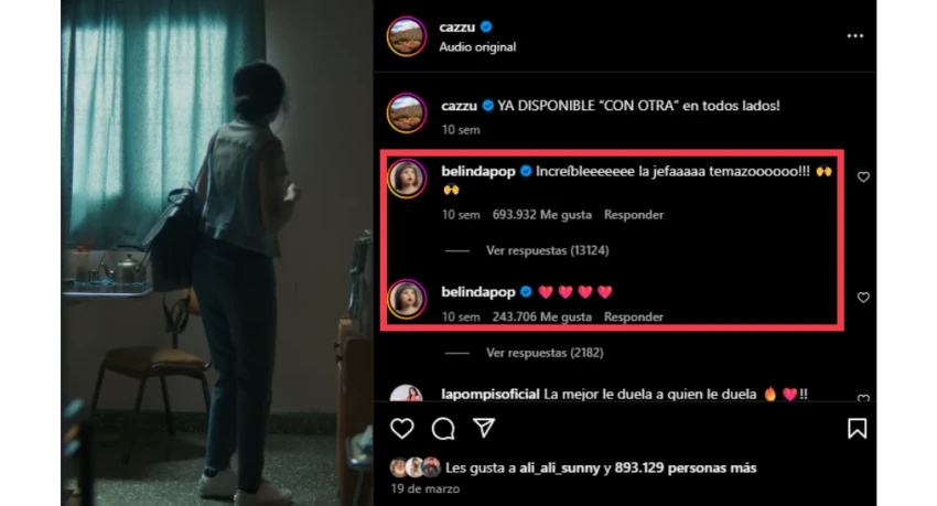 A pesar de lo dicho por la compositora argentina, en el pasado Belinda ya ha intentado conectar con ella, al menos halagando su trabajo musical, tal y como demostró cuando Cazzu estrenó uno de sus temas más virales de este 2025: "Con Otra".
