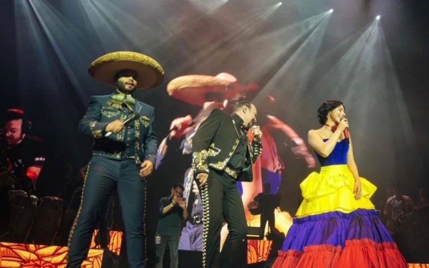 La cantante Ángela Aguilar se presentó este fin de semana en el Movistar Arena de Bogotá con un vestido basado en los colores de la bandera de Colombia. Con una combinación de azul, amarillo y rojo, el atuendo buscaba rendir un tributo a su público colombiano, pero el gesto no fue del agrado de varios usuarios de redes sociales, quienes la compararon con "Blancanieves".