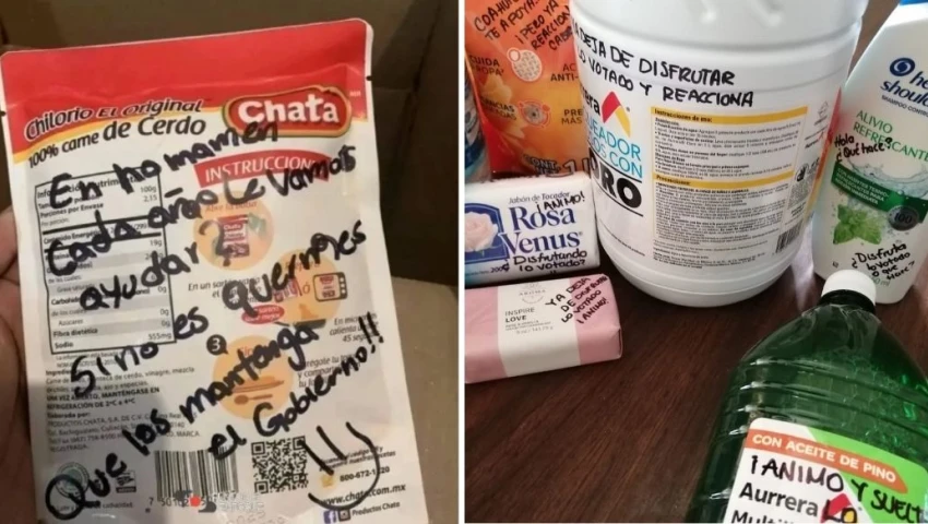 En las imágenes que se han viralizado, se puede ver que productos como sopas, sardinas, frijoles y artículos de aseo personal tenían escritas algunas frases donde reprochaban a los acapulqueños por haber votado por Morena. Una de las frases que más se repetía era "disfruten lo votado".