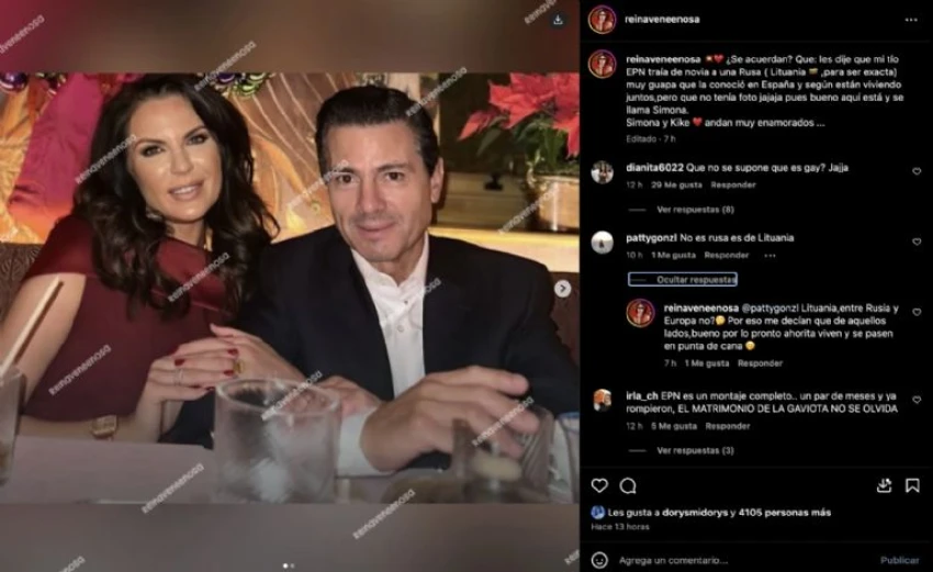 La imagen fue publicada por la cuenta de Instagram @reinaveneenosa, se dice que ambos viven juntos en España, país en el que el exmandatario vive desde que se alejó de la vida política de México.