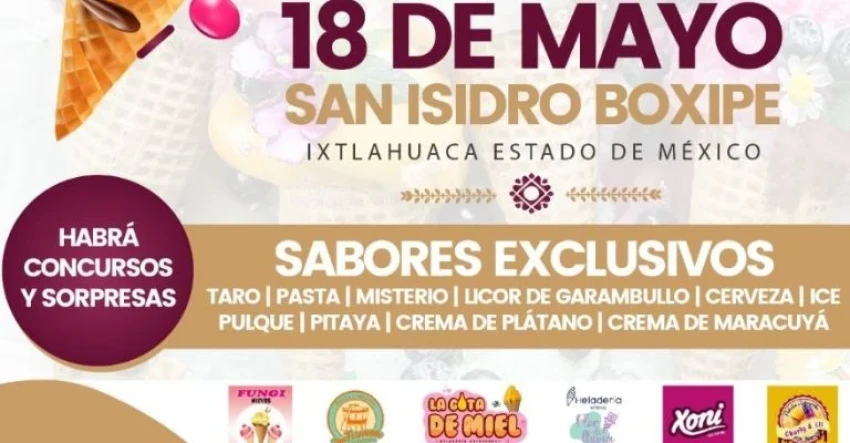 El Estado de México se prepara para celebrar este 18 de mayo la cuarta edición de la Feria del Helado en la comunidad mazahua de San Isidro Boxipe, en el municipio de Ixtlahuaca, donde los asistentes podrán disfrutar de sabores únicos y una experiencia llena de tradición, gastronomía y cultura local.