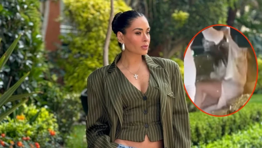 El episodio quedó grabado y en las imágenes se puede apreciar como su novio, el modelo español Isaac Moreno, reaccionó rápidamente y evitó que el golpe que se dio la conductora del programa Hoy fuera más grave.