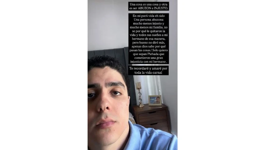 “Una cosa es una cosa y otra es ser abuzon e injusto. En mi put4 (sic) vida he sido una persona abusona, mucho menos injusto, y mucho menos mi familia. No sé por qué le quitaron la vida y todos sus sueños a mi hermano de esa manera. Pero bueno, no diré más, apenas Dios sabe por qué hace las cosas. Solo quiero que sepan, plebada, que cometieron una gran injusticia con mi carnal. Te recordaré y amaré por toda la vida, carnal”, escribió en una historia de Instagram.
