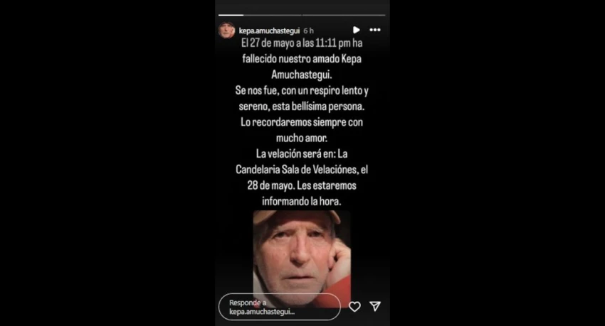 La noticia fue compartida a través de un comunicado en sus redes sociales oficiales, donde su familia escribió: “El 27 de mayo, a las 11:11 de la noche, ha fallecido nuestro amado Kepa. Se nos fue con un respiro lento y sereno esta bellísima persona”.