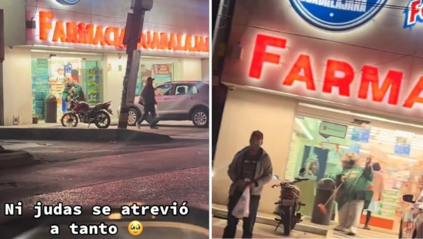 Fue un usuario de TikTok identificado como @borre488 quien compartió un video con la leyenda "Ni Judas fue tan traicionero", donde se puede ver a una botarga de Dr. Simi barriendo la entrada de Farmacias Guadalajara. Pese a ser sorprendido, el trabajador se mostró contento y saludó a la cámara.