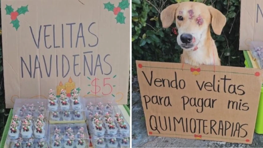 Un perrito ha conmovido en redes sociales por un video donde anunció la venta de velitas navideñas para pagar su tratamiento