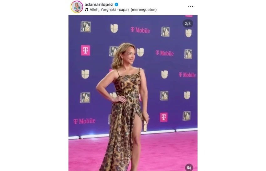 La conductora y actriz Adamari López desfiló en la alfombra con un traje ajustado, con una tela en la que el animal print se casó con lo metálico. También desfiló de dorado la conductora venezolana Marie Claire y la presentadora de El Gordo y La Flaca, Lili Estefan.