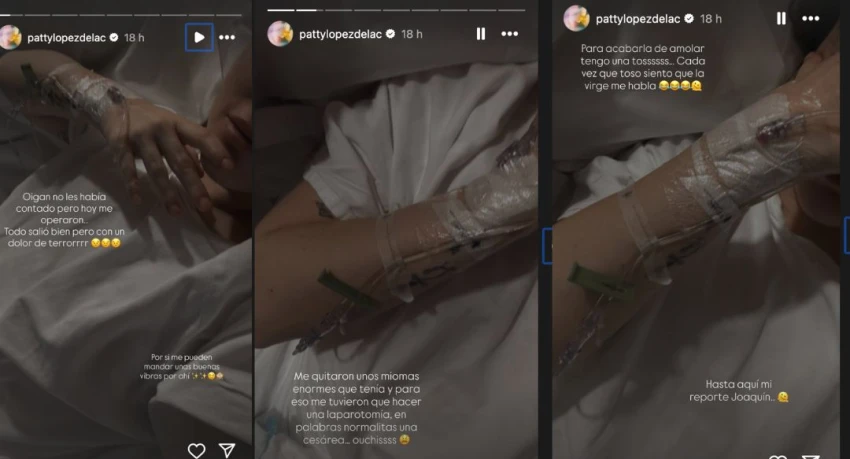 “Me quitaron unos miomas enormes que tenía y para eso me tuvieron que hacer una laparotomía. Todo salió bien, pero con un dolor de terror”, compartió desde la cama del hospital.