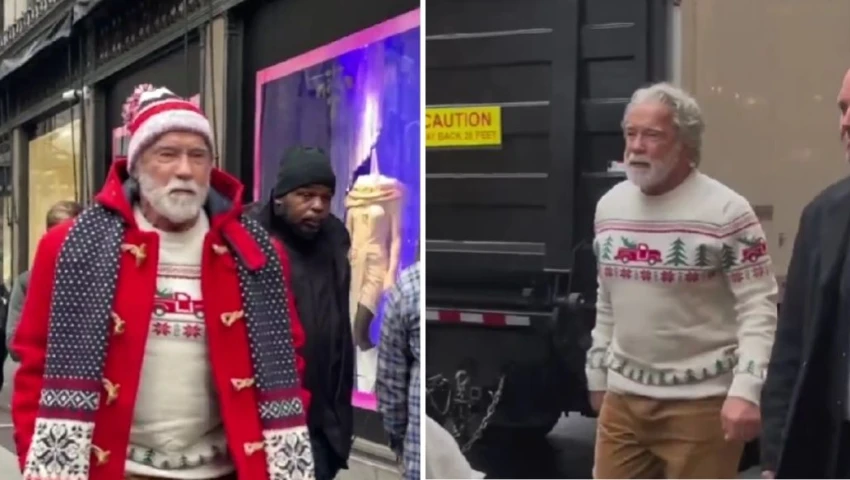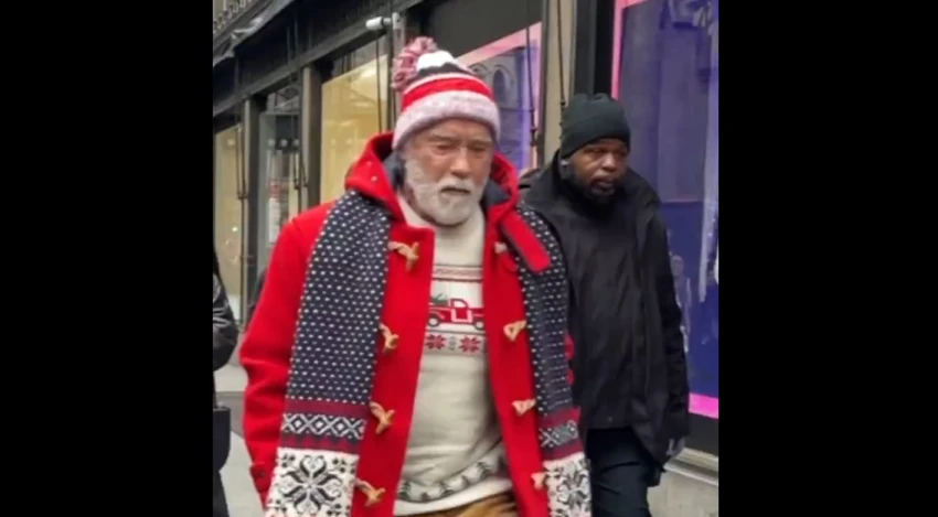 Arnold Schwarzenegger is seen for the first time on set of “The Man With the Bag” as he plays Santa Claus, filming in Manhattan.pic.twitter.com/HJJ9mlweyx