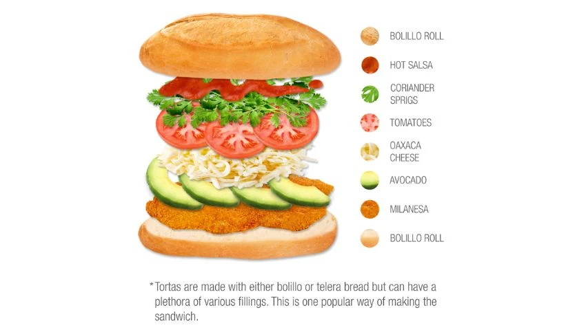 Taste Atlas describe a la torta como un sándwich “tradicional mexicano”, servido en panecillos únicos: el bolillo (de influencia francesa) y la telera redonda, originaria de Puebla. Ambos se cortan horizontalmente, se untan con mantequilla y se rellenan con una infinidad de combinaciones típicamente mexicanas: frijoles, aguacate, jamón, queso, jalapeños, carne deshebrada, pollo frito, cerdo asado… incluso tamales.