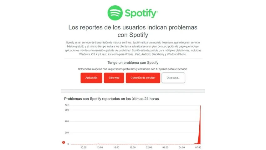 Incluso la página de estado oficial de Spotify estuvo caída durante algunos minutos.