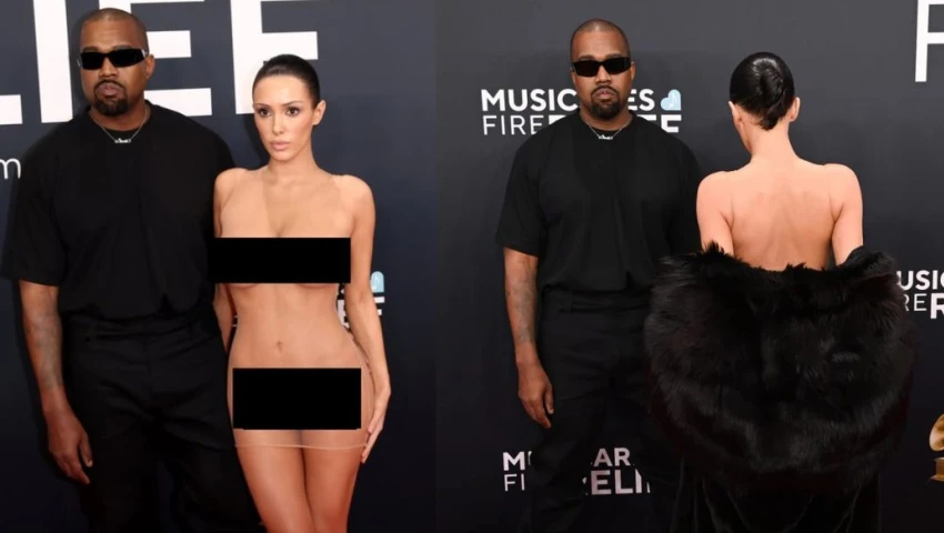 VIDEO | Esposa de Kanye West aparece casi desnuda en Grammys 2025 y son expulsados por no tener invitación